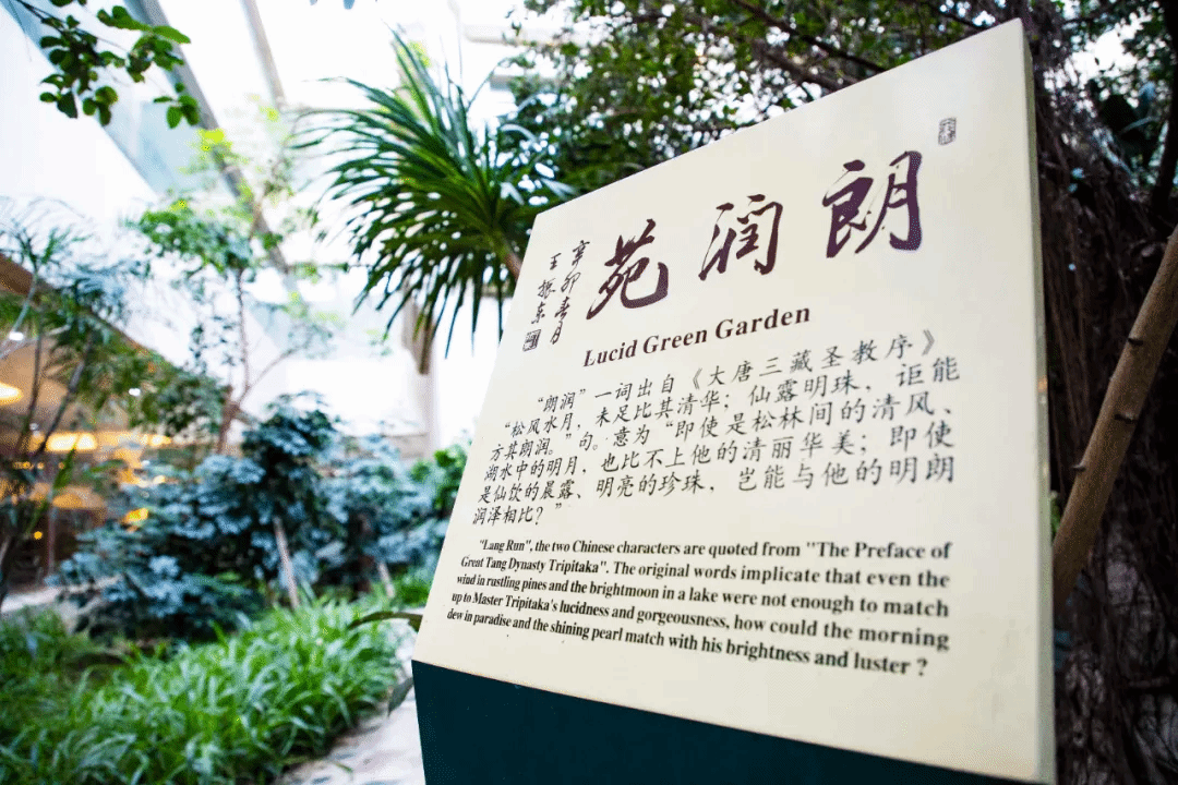 图书馆的宝藏打卡地“朗润苑”,花香阵阵、水流澹澹,阳光洒在身上带来热带雨林般休憩感受。