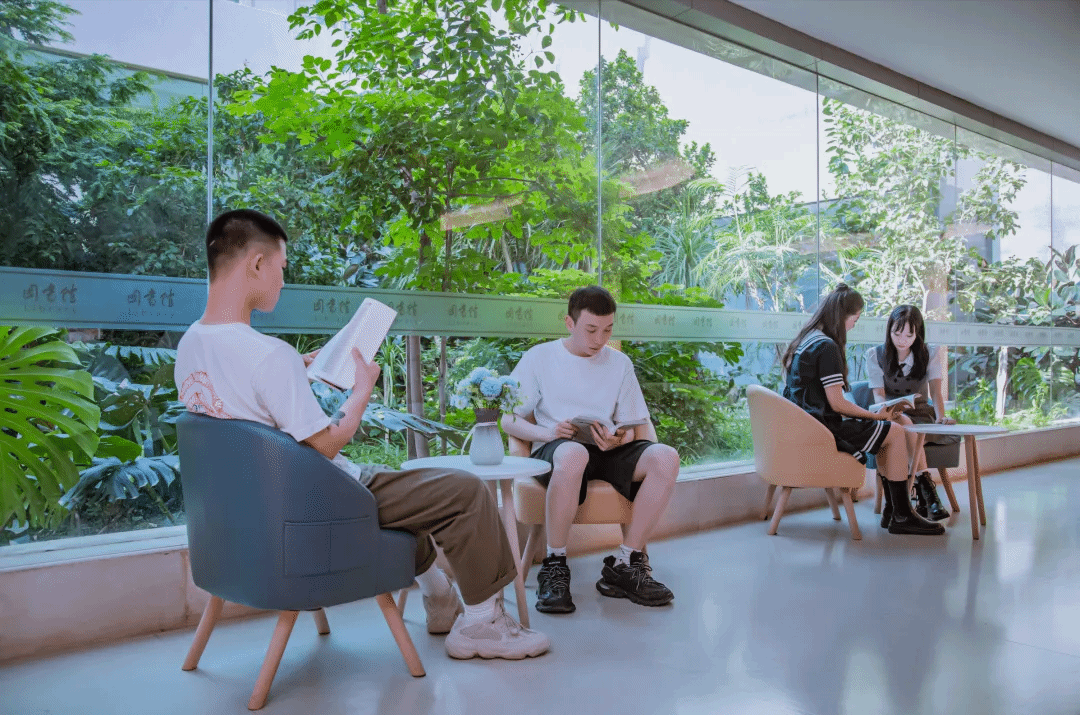 同学们相约一起,漫步“花园学校”,沉醉地听着春的旋律。
