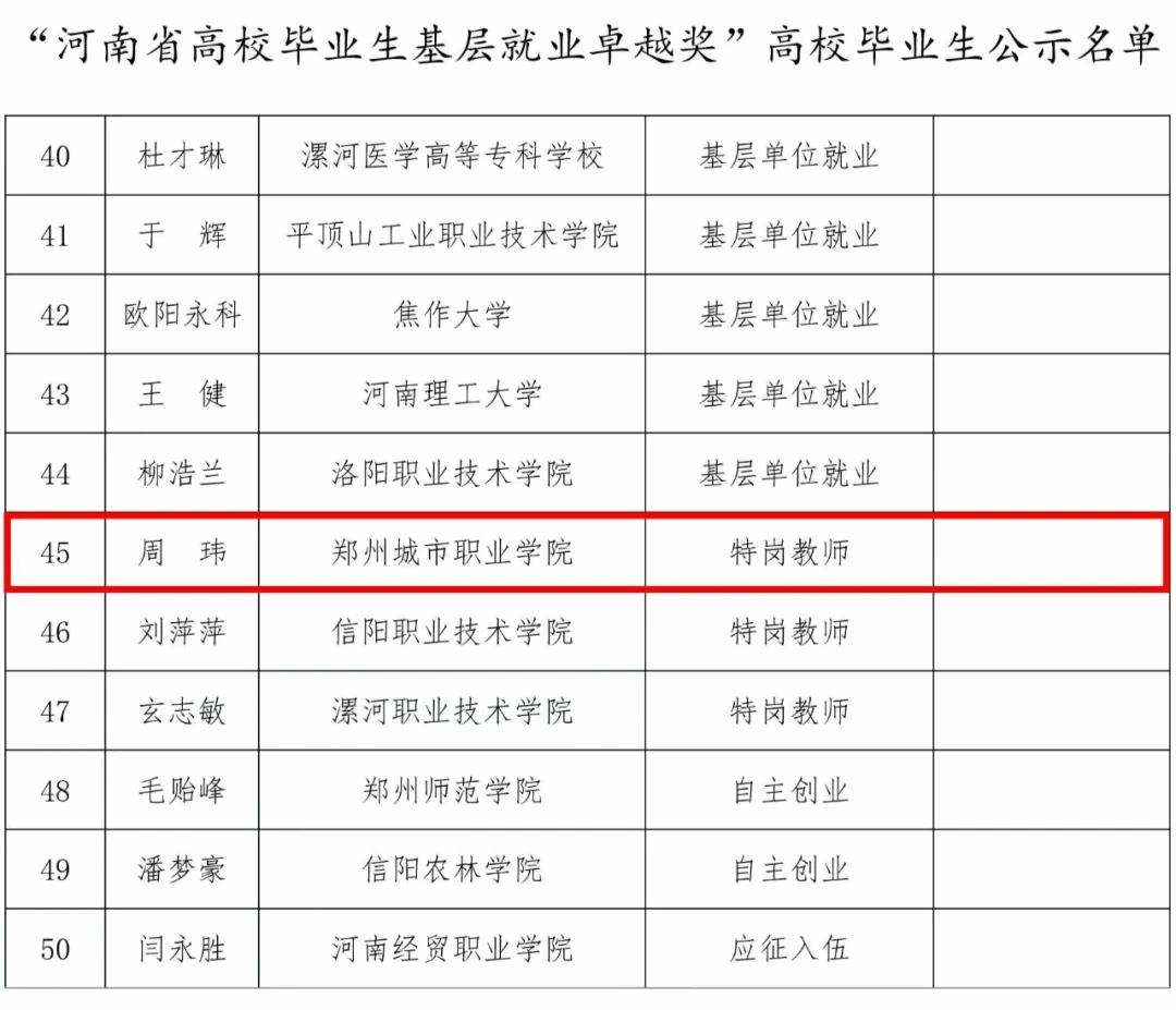此次郑州城市职业学院毕业生荣获“高校毕业生基层就业卓越奖”是对学校就业工作的充分肯定。学校将引导毕业生树立正确的择业观、就业观,积极开展教学和研究工作,精研就业指导课程,优化就业指导服务,以更加细心暖心的举措,以更加务实求实的精神,鼓励和引导更多毕业生激扬青春、投身基层,到党和国家需要的地方建功立业。