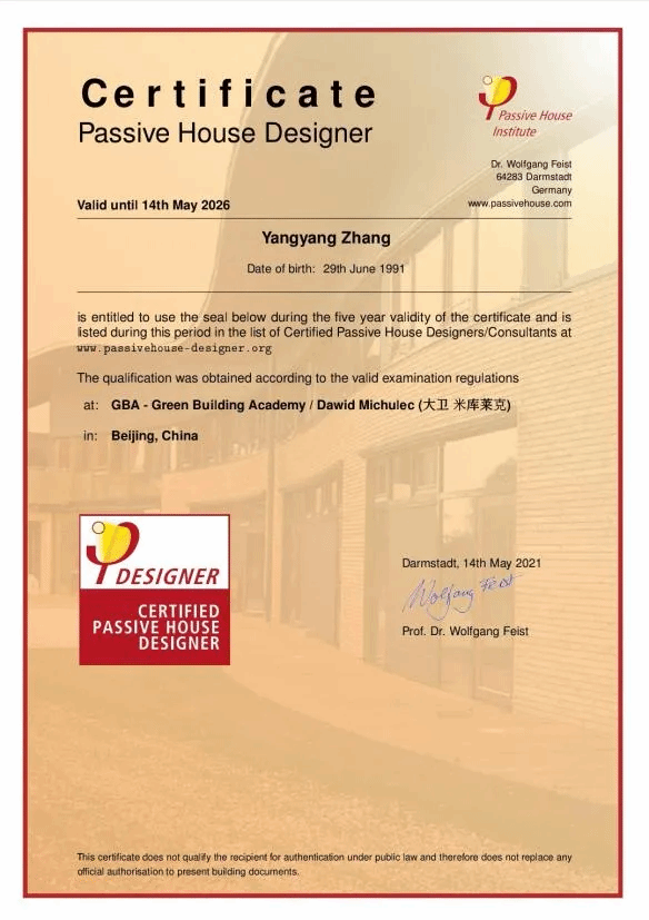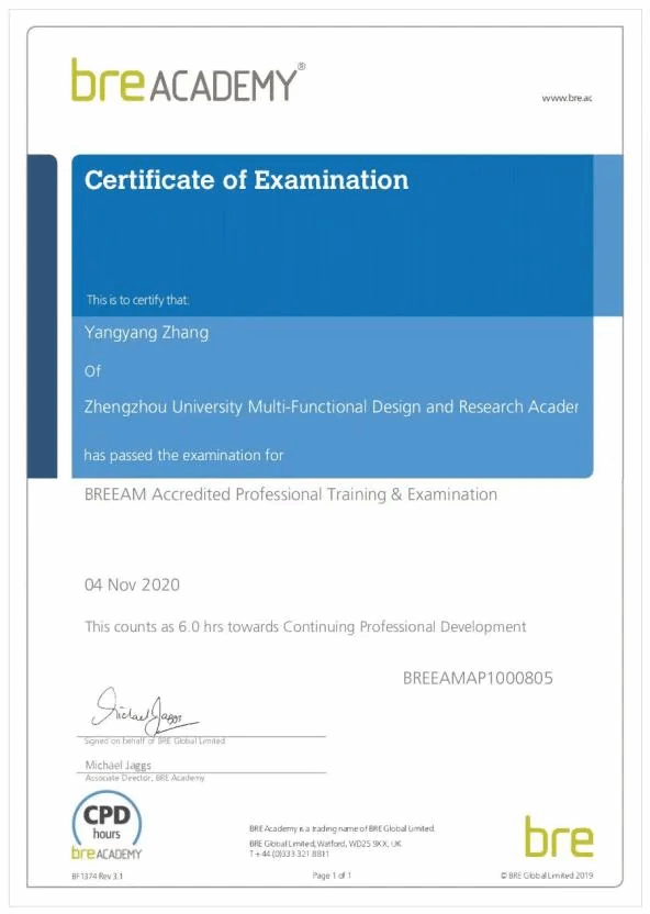 然而,张杨洋并未满足于此。他通过深入分析,敏锐预见到绿色建筑将是建筑行业的蓝海市场。为此,他开始学习世界各国的绿色建筑标准,将目光聚焦于世界首个提出绿色建筑概念的英国建筑研究院。2020年11月,张杨洋成功考取英国建筑研究院BREEAM特许从业专家(AP)资格,成为河南省唯一获此殊荣者。为了更好地适应未来行业发展,2021年5月,他又考取德国PHI国际被动房注册设计师,成为河南省第三十一个、郑大唯一拥有该资格的人,填补了郑大在被动式超低能耗领域的空白。同年6月,绿色建筑研究室正式更名为绿色建筑(超低能耗)研究室,张杨洋在绿色建筑领域的专业地位愈发稳固。