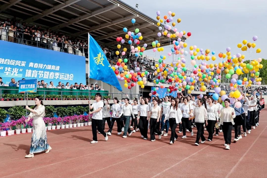 社团代表队和啦啦队上演青春活力的舞蹈,将现场的热闹气氛推向高潮。教职工队伍放飞梦想气球,让爱意与朝气飞翔。