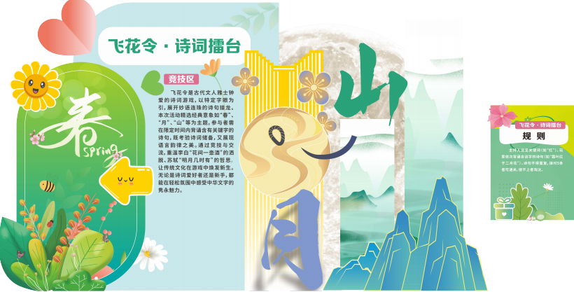 以“春”“月”等关键字进行诗词接龙,参与者轮流背诵相关诗句,不得重复,成功接龙5次即可晋级。考验诗词积累与临场反应。