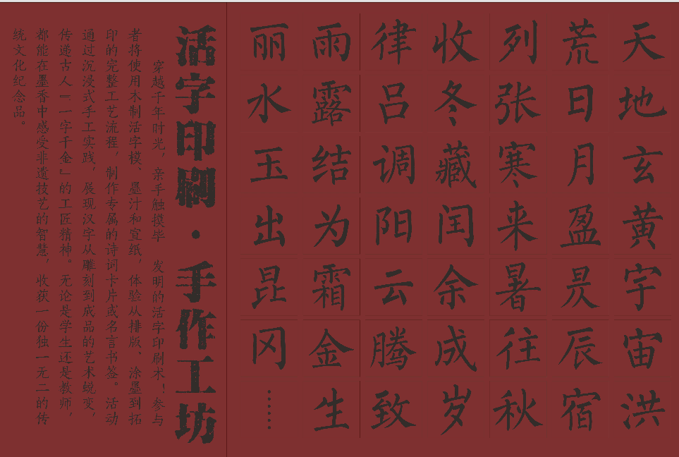 亲身体验传统印刷工艺,使用活字模排版并拓印经典诗词,完成的拓印作品可带走留念。