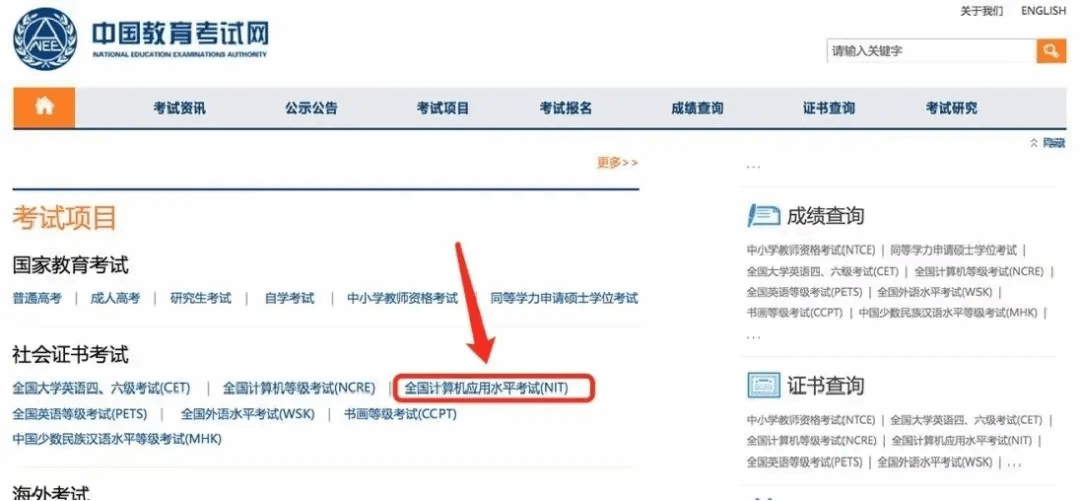 5.选择【全国计算机应用水平NIT】