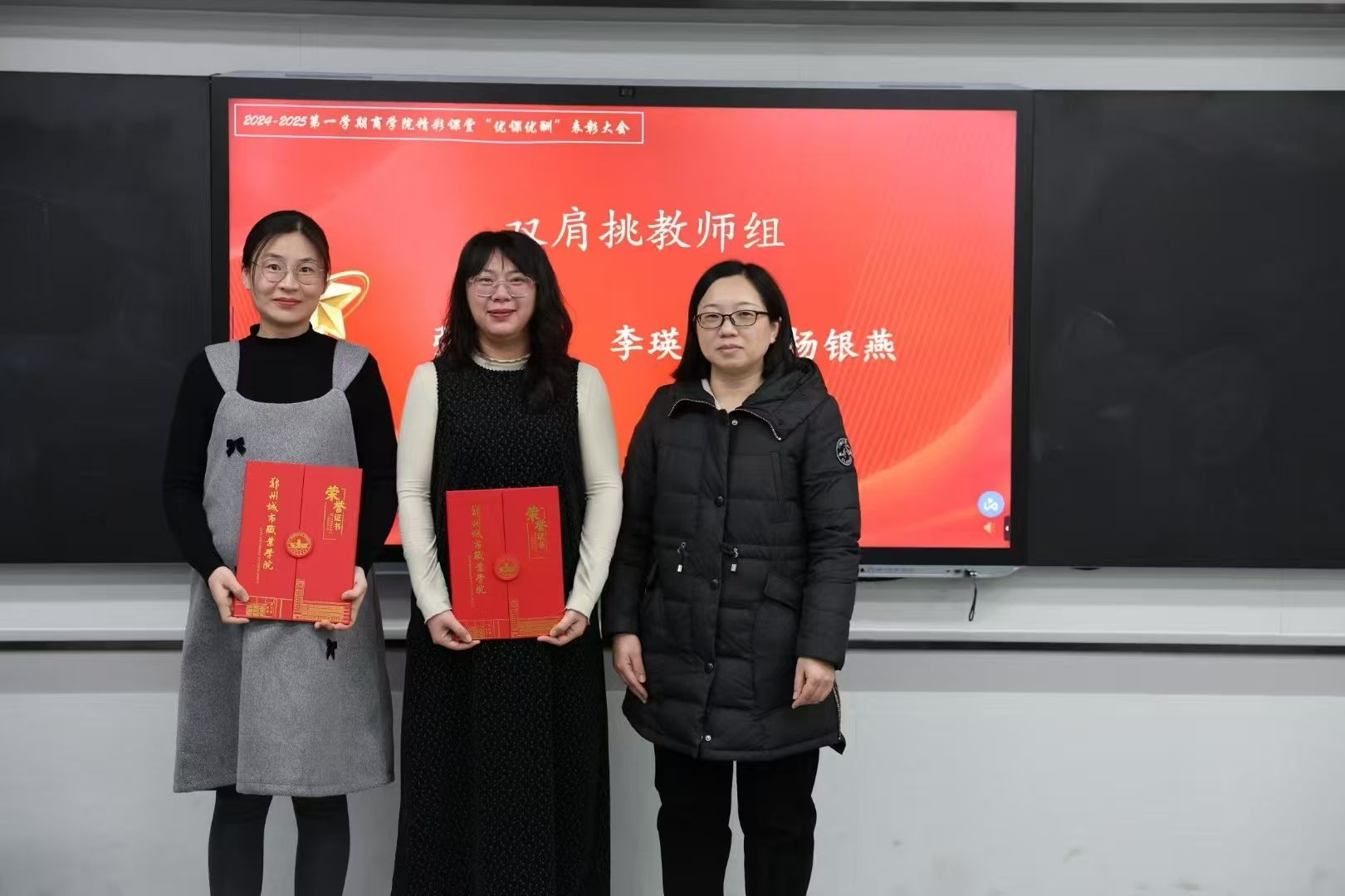 随后由各位领导为双肩挑教师组、自有专任教师(初级、无职称组;中、高级职称组)获奖教师颁奖。